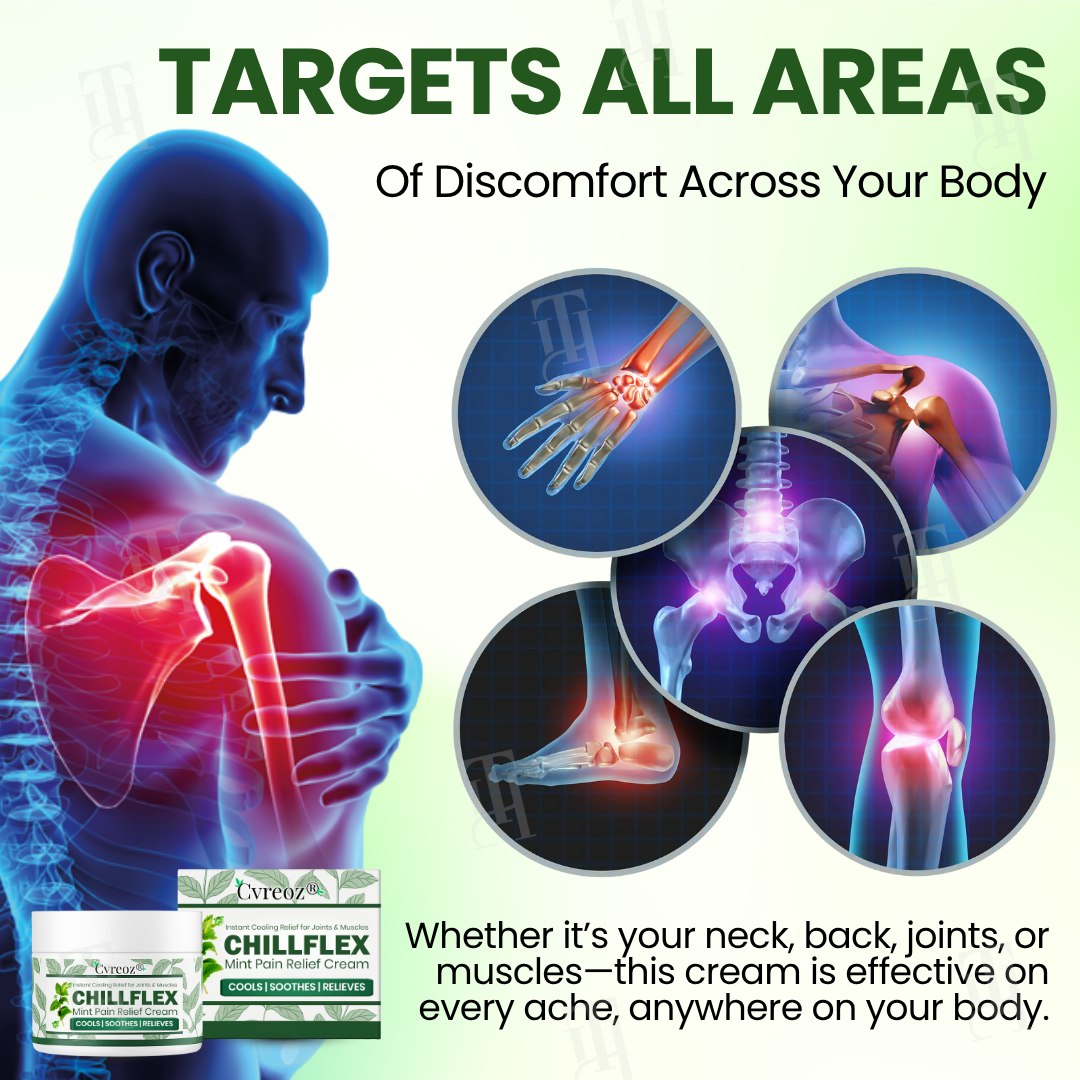 With Cvreoz® Chillflex Mint Pain Relief Cream, you're not just masking discomfort—you’re actively targeting the root of inflammation and tension. Feel real relief, move freely, and reclaim control over your body.