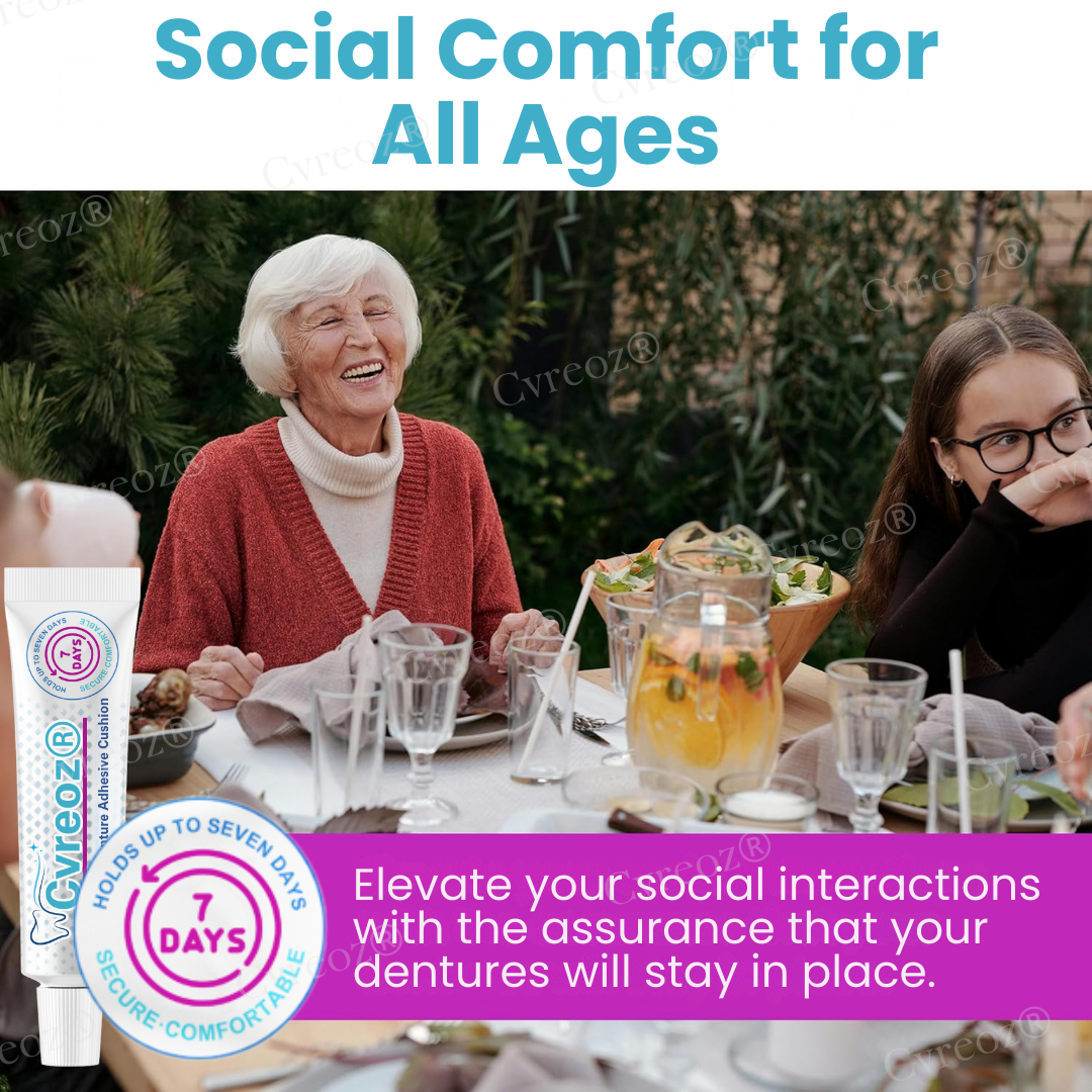 Designed for denture wearers of all ages, CvreozÂŽ offers a strong, custom fit that holds firmly in place, even during meals. Whether you're enjoying your favorite foods or engaging in daily activities, its long-lasting adhesion can keep dentures secure for up to four days. Say goodbye to the frustration of loose dentures and constant touch-upsâCvreozÂŽ keeps your smile stable, comfortable, and worry-free for days at a time!