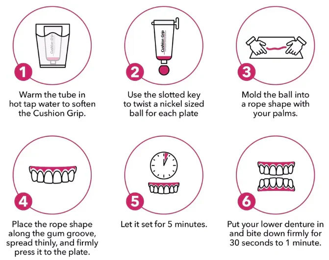 It isn’t a glue adhesive; it works like a soft reline. A single application lasts up to four days and is waterproof, so it won’t wash off during daily cleaning. Cvreoz® adheres to your dentures, not your gums.👍