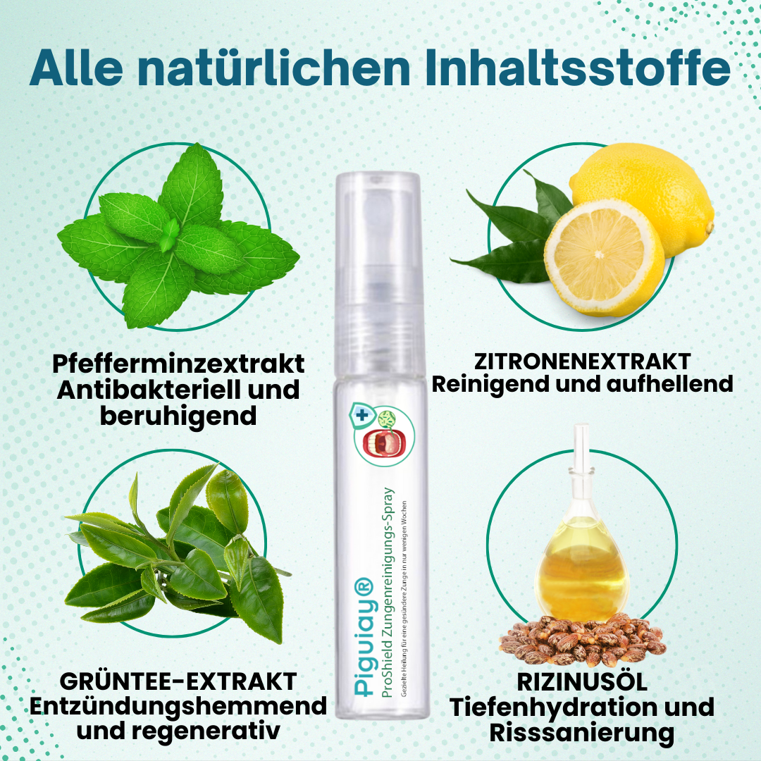 🌿 Piguiay® ProShield Tongue Restore Spray – einst nur in Zahnarztpraxen erhältlich – ist jetzt für jedermann verfügbar. Mit einer Zufriedenheitsrate von 99,8 % und weltweit über 120.000 verkauften Sprühflaschen ist es das bewährte, sanfte Mittel, um das Wohlbefinden und die Frische Ihrer Zunge wiederherzustellen.