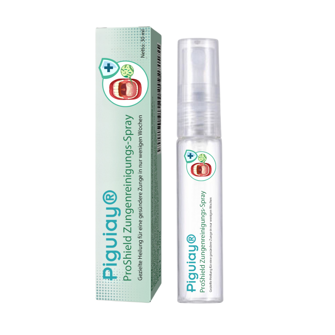 Piguiay® ProShield Zungenreinigungs-Spray nutzt fortschrittliche Nano-Spray-Absorptionstechnologie, um Ihre Zunge schnell wieder gesund und angenehm zu machen. Es wirkt gezielt gegen Entzündungen, Trockenheit, Bakterien und weißen Belag, sodass die meisten Anwender innerhalb von Minuten Linderung verspüren und innerhalb einer Woche eine Verbesserung feststellen – für eine angenehme, selbstbewusste und gesunde Zunge.