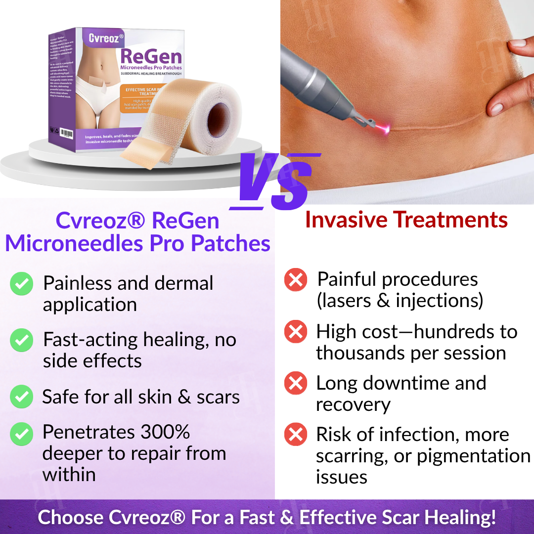 Unlike painful surgeries, harsh laser treatments, or silicone sheets that only cover up the issue, Cvreoz® ReGen Microneedles Pro Patches offers a scientifically advanced solution focused on true skin regeneration—not just temporary fixes.
