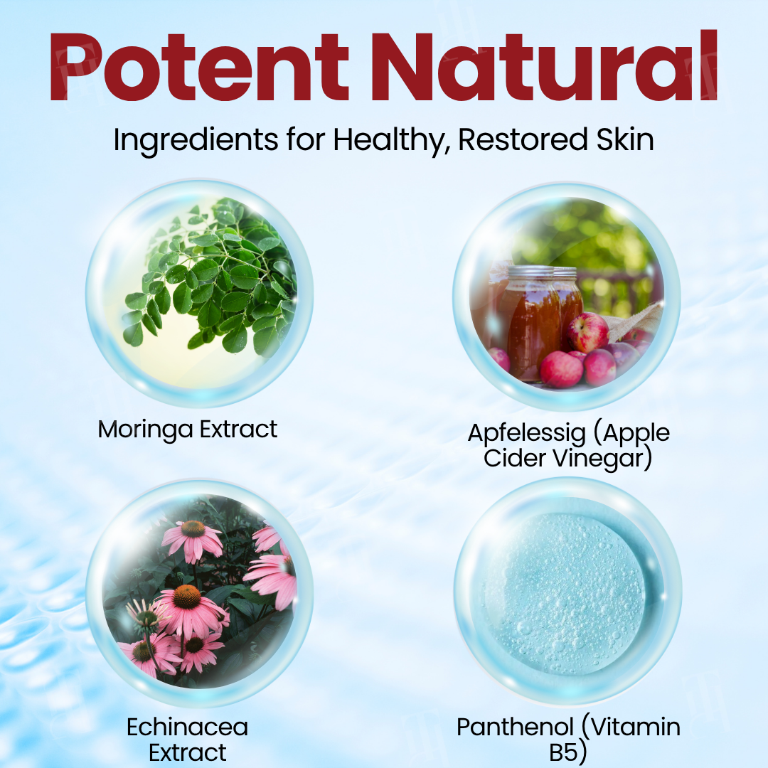 ๐Ÿ›ก๏ธReduces Inflammation and Provides Protection: Panthenol (Vitamin B5) is included to moisturize and promote skin regeneration, working alongside Moringa and apple cider vinegar to minimize inflammation and offer antimicrobial protection. This combination creates an optimal healing environment, allowing wounds to recover quickly and efficiently.